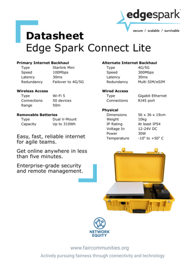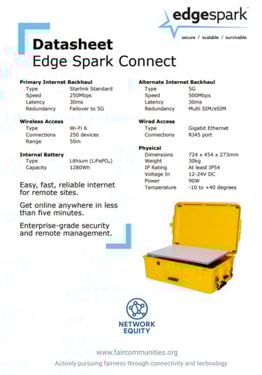 Our collaboration with EdgeSpark Anywhere Internet solutions provides reliable, secure connectivity to communities and isolated areas. By combining satellite (LEO), 4G/5G, and solar power, schools, clinics and disaster response individuals, services, businesses and teams can stay connected improving communication capacity during cyclones, volcanic activity or network outages