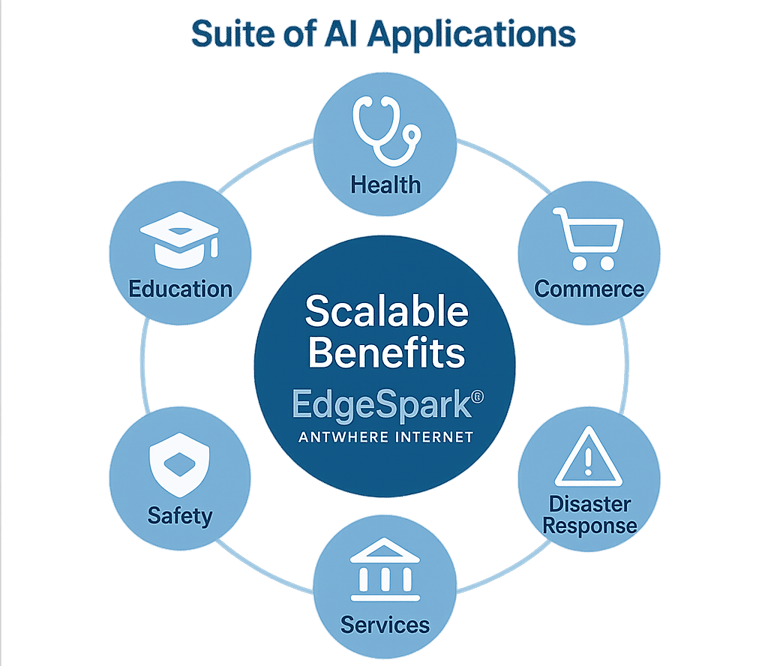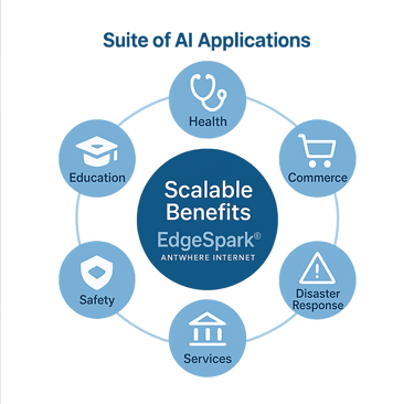 At Aideen Network, we bring together AI-powered applications across health, education, communications, safety, disaster response, and commerce, and anchor them on EdgeSpark® Anywhere Internet. This creates a scalable platform where multiple solutions can thrive side by side, delivering integrated benefits rather than isolated outcomes.
